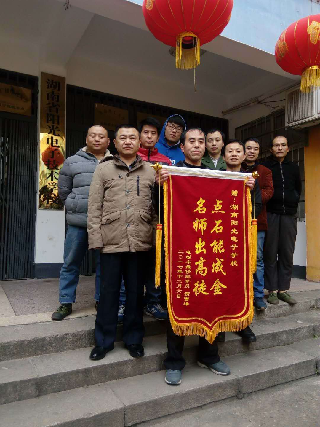 電摩維修班學(xué)員送學(xué)校錦旗